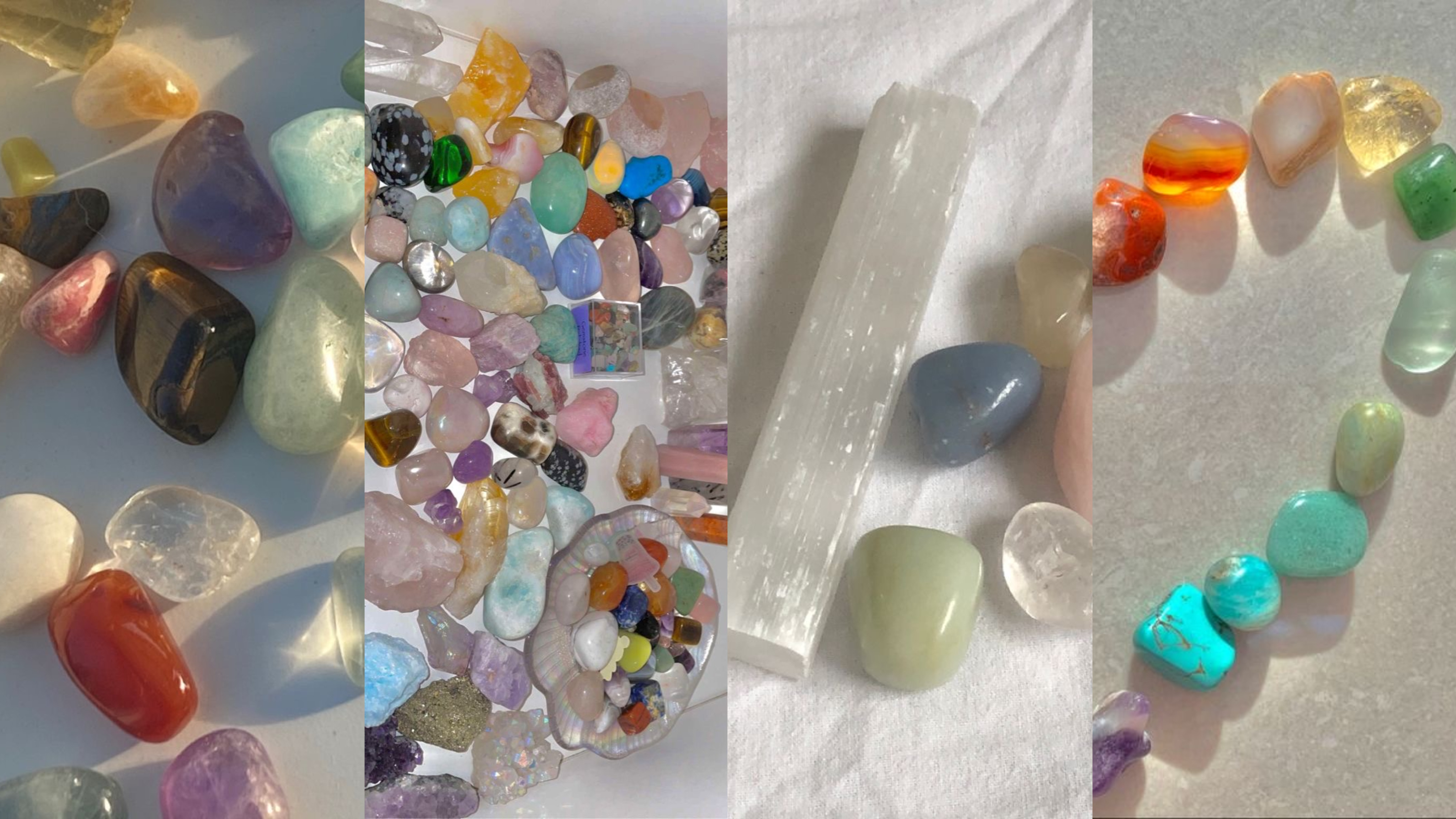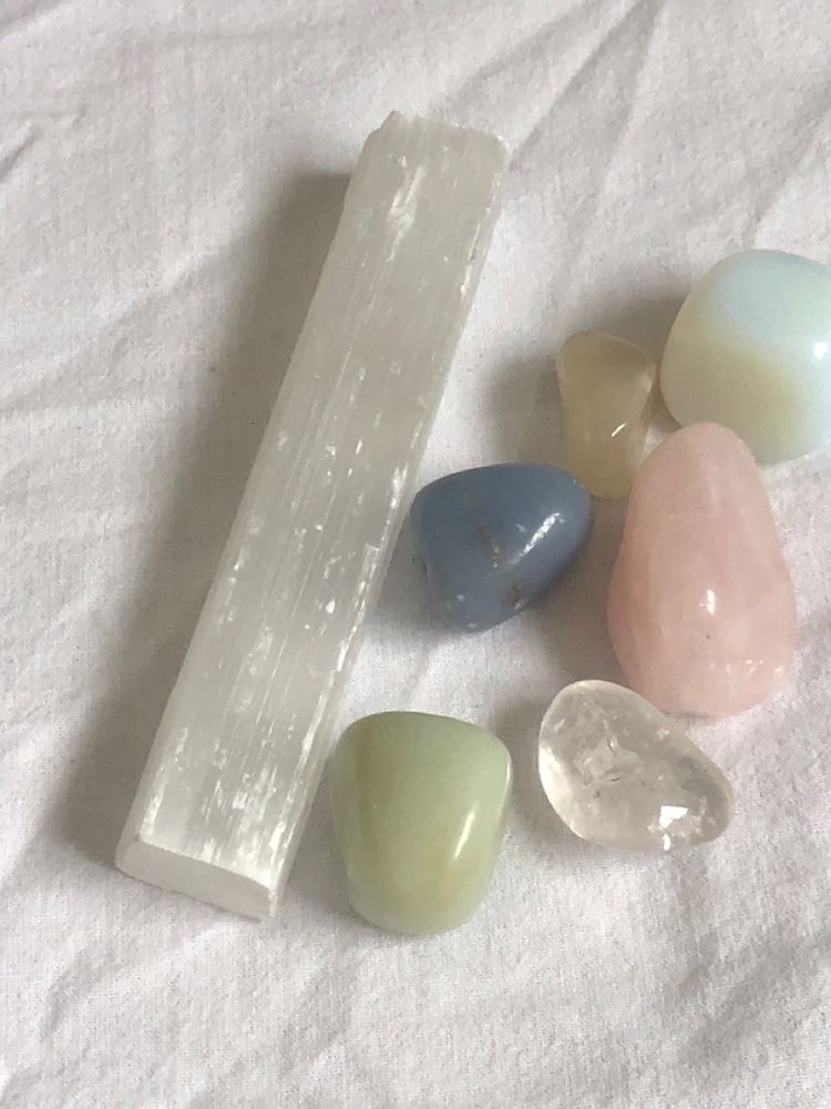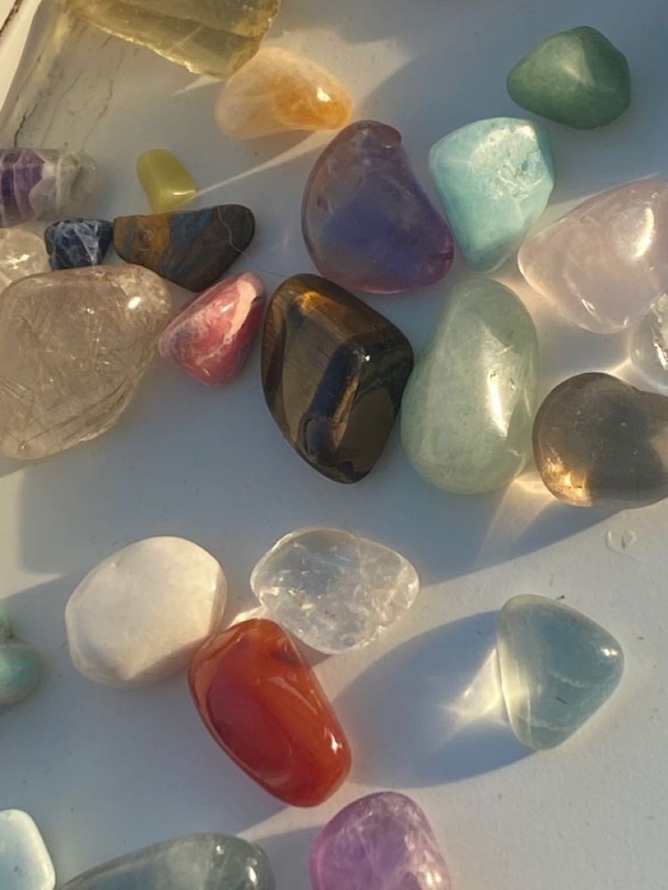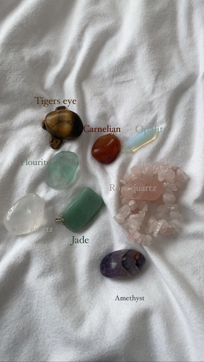 jade, clear quartz, flourite, rose quartz, carnelian, tigers eye, opalite...